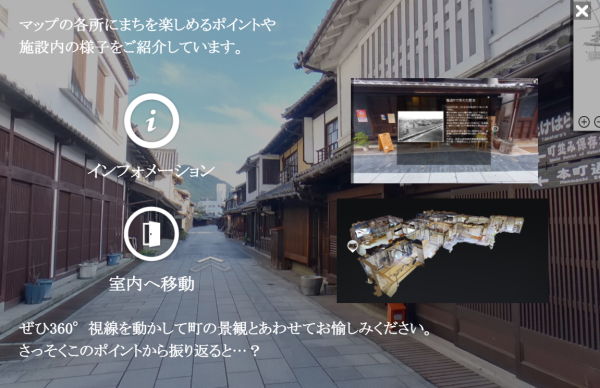 町並みや施設を360度映像で歩いている感覚で体感できます